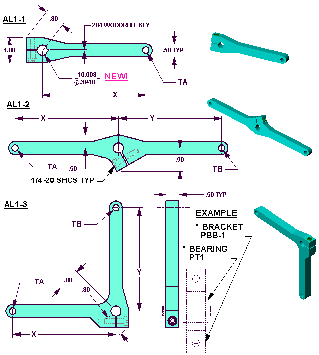 PLEASE NOTE -- Our PT1 and PT2 pivot bearing dimensions have changed. They now have a slightly larger shaft. Therefore, if you are replacing an AL1 series lever with the older .375 bore, please be sure to note on the order: BORE= .375
